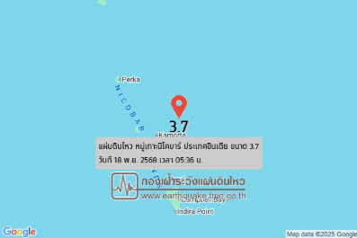 แผ่นดินไหว หมู่เกาะนิโคบาร์ ประเทศอินเดีย (Nicobar Islands, India Region) ขนาด 3.7
