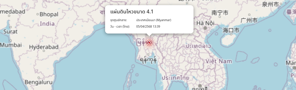 แผ่นดินไหว ประเทศเมียนมา (Myanmar) ขนาด 4.1