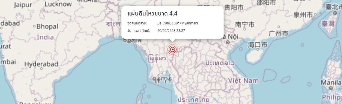 แผ่นดินไหว ประเทศเมียนมา (Myanmar) ขนาด 4.4