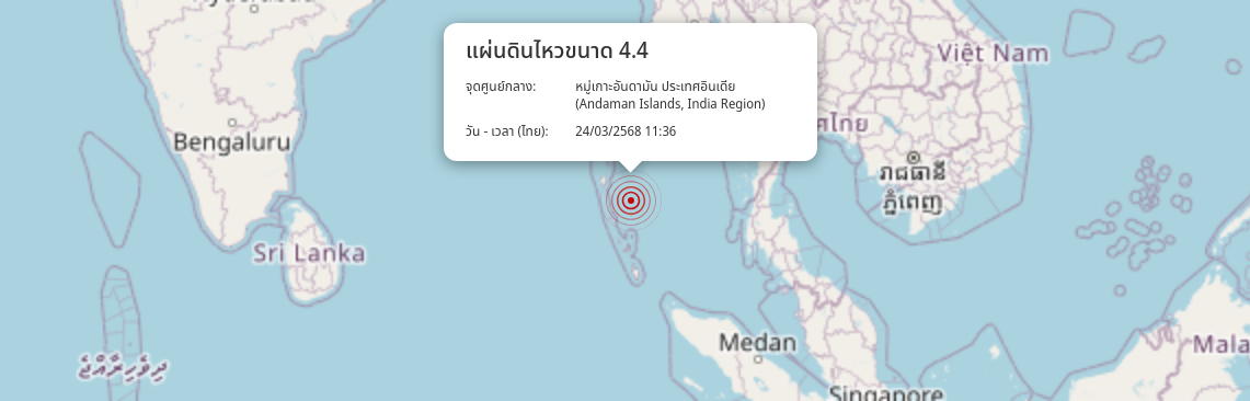 แผ่นดินไหว หมู่เกาะอันดามัน ประเทศอินเดีย (Andaman Islands, India Region) ขนาด 4.4